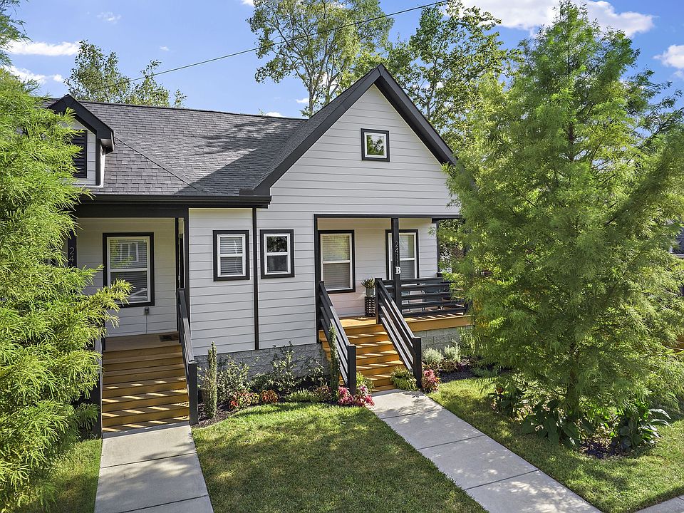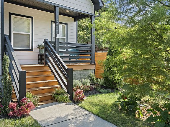 This stylish 3 bedroom, 2 bath one level home in the heart of Nashville features 1,336 sqft of living space and a modern design with hardwood and tile floors throughout. A private covered front porch leads into a spacious living area with vaulted ceilings perfect for hosting friends. The open concept kitchen is a chef's dream- complete with a gas range, over sized island, stainless steel appliances, quartz countertops and ample cabinetry. The primary bedroom offers a comfortable retreat with natural light and an en suite bathroom with tiled walk in shower and cabinets for ample storage. Two additional bedrooms provide flexibility for a home office or guest room. The fenced in backyard is ideal for enjoying barbecues, gardening, and get togethers on a large deck. Alley access to a 2 car garage-port. Located in a desirable area just minutes from downtown; this home provides easy access to the city's vibrant dining, shopping, and entertainment as well as 3 colleges all within 3 miles.