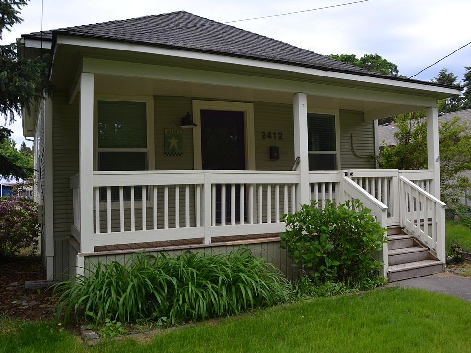 2/1 bungalow in old town forest grove ...eat in kitchen, utility room with washer/dryer connections Covered front deck, off street parking and single detached garage Tenant responsible for all utilities