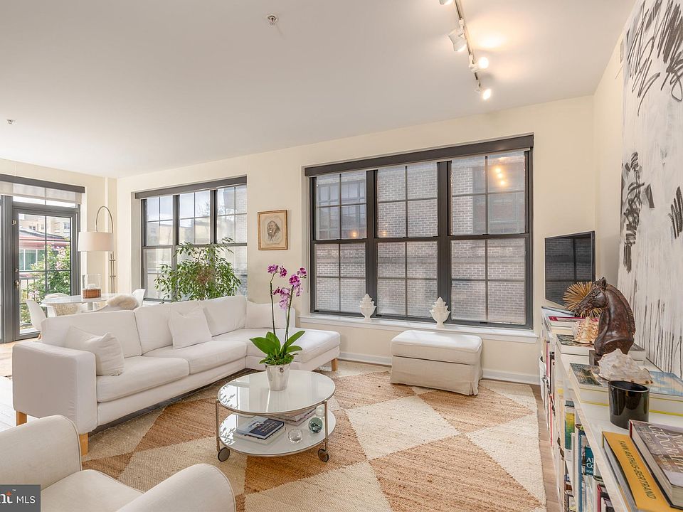 Welcome to this stunning 950 square foot two-bedroom, one-bath condo nestled in a charming boutique building on 17th street. This light-filled corner unit features oversized loft-style windows and a spacious private balcony, allowing natural light to pour in from all angles. With high ceilings and brand-new French oak hardwood floors, the open layout is perfect for modern city living. The living area offers both comfort and style, with plenty of space for formal dining, a cozy living room, and a kitchen bar outfitted with granite countertops and stainless steel appliances. The balcony provides the ideal setting for morning coffee or evening meals, while soaking in the sunlight and city views. The freshly updated bathroom boasts marble tile flooring, a frameless glass tub, and sleek new fixtures. Both bedrooms are designed with floor-to-ceiling windows and door access, enhancing the airy, bright atmosphere throughout. Turn-key and move-in ready, this unit has been freshly painted and comes with a 2022 HVAC upgrade. Additional highlights include extra storage in the lower level, a pet-friendly policy, and a prime location near Meridian Hill Park, Harris Teeter, and the vibrant restaurants and cafes of Adams Morgan. With a Walk Score of 97/100, this condo offers the best of city living.