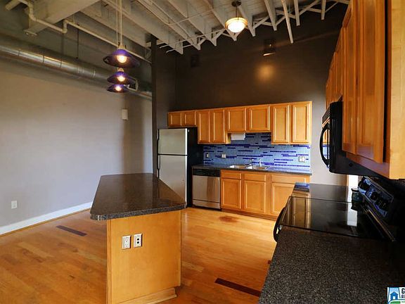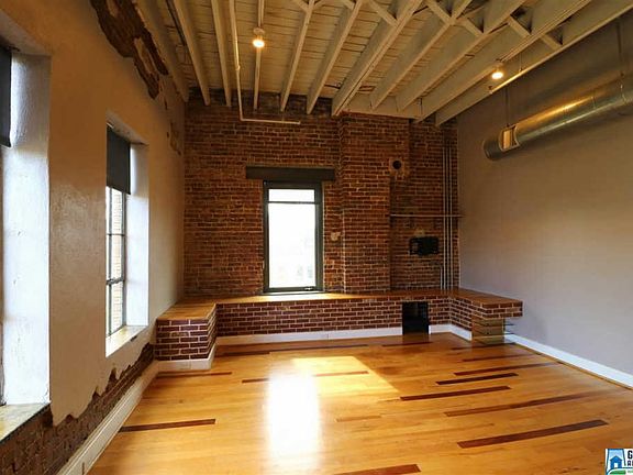 True Loft! This beautiful Top floor Corner Loft is the place to live, with exposed brick, pristine hardwood floors, conveniently located to great restaurants, entertainment venues, walking distance to UAB, and the New Publix Grocery story. This Loft has arched windows with automated solar shades, lot's of natural light! Comes with washer/dryer, custom tiled kitchen, wall mounted TV, and built in sound system throughout. Also has a rooftop deck with a community gas grill.