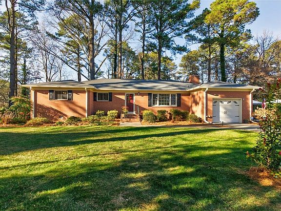 Awesome opportunity in Great Neck Estates. Just appraised for $725,000.00. An all brick 1 story home located on a 1 acre cul-de-sac lot with room for expansion. Your own waterfront, wooded and private oasis with a botanical gardens setting. Professionally landscaped, with an irrigation system and a multitude of different trees and shrubs with a path around the property. Extra parking for an RV. 4 large bedrooms and 2 full baths. Hardwood floors. Sunroom with access to the backyard and deck. Gas fireplace. Great Neck schools. A very active and fun civic league. Close proximity to shopping, dining, hospital, parks, and bases. Pride of ownership and care shows inside and out. Don't wait, make it yours today!