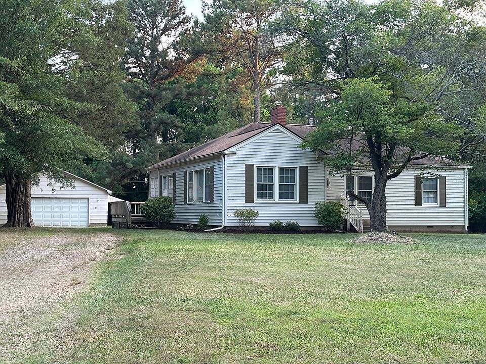 Great 1949 ranch house on .85 acre lot with detached 2-car garage/shop and storage above. Updated kitchen and bathroom, hardwoods throughout, and a laundry room with washer/dryer included. Great house just 3 miles from 540. A country feel, but close to everything you need! Renter responsible for all utilities including gas (propane) and electric. House is on Well and Septic, so no water and sewer cost!