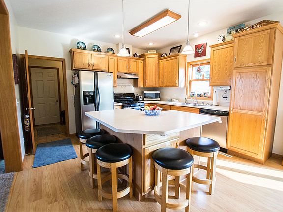 Here is the home you've been looking for! Located just off of Highway 9, you'll get that country feel with this 4 bedroom, 3 bath home with an oversized attached 3-car garage and sizeable yard! Inside, the main floor offers 3 bedrooms, including a large master bedroom with walk-in closet and a bath. The main floor laundry keeps everything contained, the dining room gives way to the outdoor patio through sliding glass doors and the eat-in kitchen helps with quick meals before school or work. The lower level is the place to be for movie nights, card games or foosball! There are so many options for work or play in the lower level, as the back room is currently being used as an office or could be a craft room, exercise room, etc. You'll also find the 4th bedroom and a 3/4 bath completing the space. Extra features include in-floor heat in the lower level, oversized garage with access to the lower level, nice-sized yard and a patio off the dining room. Call today!