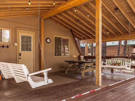 Charming Chalet-Style Cabin on 1.35 Acres in Forest Lakes Escape to the tranquil beauty of Forest Lakes with this enchanting chalet-style cabin, nestled among towering pines on a spacious 1.35-acre lot. This turnkey furnished mountain retreat offers 2 bedrooms, 1.5 baths, and a generous sleeping loft, blending rustic charm with modern comforts. Step inside to a warm and inviting cabiny atmosphere, featuring wood tongue-and-groove ceilings and a cozy standalone fireplace that adds both character and warmth to the family room. The expansive window wall brings the outdoors in, offering breathtaking views of the surrounding trees and abundant wildlife. The thoughtfully designed kitchen boasts a picturesque window above the sink, where you can take in the sights of passing wildlife. The upstairs loft provides ample space for guests to unwind while enjoying stunning treetop views through the soaring window wall. Don't miss the laundry room with the outside entrance along the path to the back of the home. The unique elevated walkout balcony overlooks the sloping lot, providing a peaceful vantage point among the pines. A private guest room at the rear of the property has been tastefully updated with wood-paneled walls and farmhouse-style closet doors, creating a cozy and secluded retreat. It has a separate entrance downstairs and to the rear of the cabin. Located in the coveted Forest Lakes community, this move-in-ready cabin offers the perfect getaway from the Phoenix heat, with cool summer temperatures in the 70s and a serene mountain setting. Don't miss your chance to own this one-of-a-kind escape in the heart of Forest Lakes, AZ!