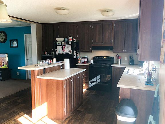 - RoomKitchenFeatures: Kitchen Island, Counter Tops-Formica, Floors-Vinyl, Cabinets-Stained, Bar