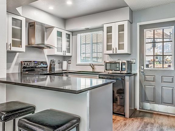 The coolest town home by far! Open the door to your downtown loft. Open main level gives this place a comptempory feel. This town home has been remodel with newer kitchen cabinets by American Woodmark featuring soft close hardware. Quartz counters, Kenmore Elite black finish appliances, all included. Koehler composite farm style sink with brushed nickel finish. Cortec tile flooring with concrete finish on entire main level. Artistic lighting fixtures and wall cabinetry give this place a modern feel. Mohawk carpet on upper level. 2 bedrooms upstairs with Hampden Bay ceiling fans and custom lighting. 3/4 bath has been completely remodeled with custom shower, Jacuzzi and Kohler fixtures. Basement has the 3rd bedroom, 3/4 bath and media room. Frigidaire washer and dryer are included. Enclosed/fenced backyard with plenty of space for a patio or garden, also backs to the greenbelt. You will not be disappointed, this is a special place.
