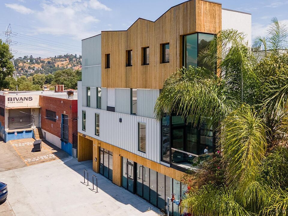 Here in what's known as Frogtown, a slice of Los Angeles alongside the river, is a new building. These are live/work lofts, designed for a life built to be both efficient and inspired. The space is defined by clean lines and unblemished surfaces, with floor-to-ceiling windows that not only bring the world in but also frame it beautifully. Inside, you'll find a modern kitchen and two and a half bathrooms. The layout includes a bedroom loft and a main bedroom that opens directly onto a private patio. For convenience, a washer/dryer and dishwasher are tucked away in the kitchen area. The building provides peace of mind with gated parking and electronic entry. The private patio offers a quiet escape. From there, you can observe the true character of the city, the warehouses and power lines, as well as the river that gives the neighborhood its identity. Located in the heart of Frogtown, you're just moments away from the best of the Eastside.