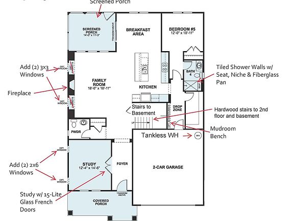 - Patio & porch: Front Porch, Rear Porch, Screened