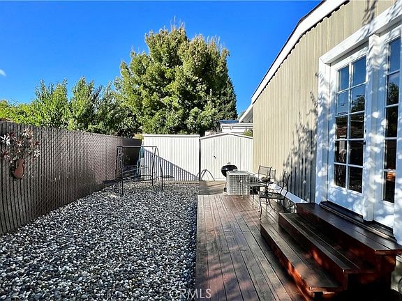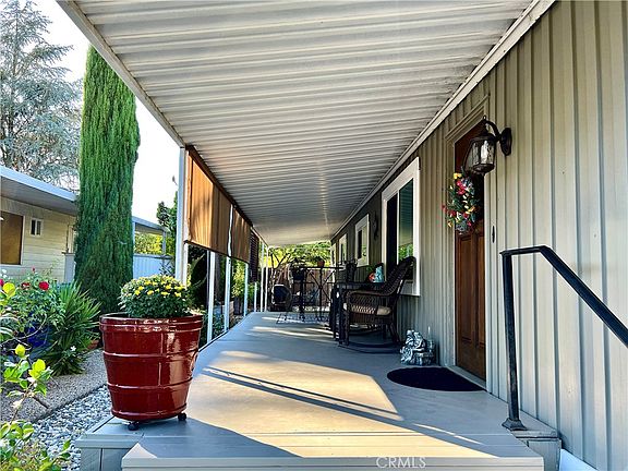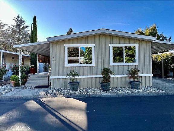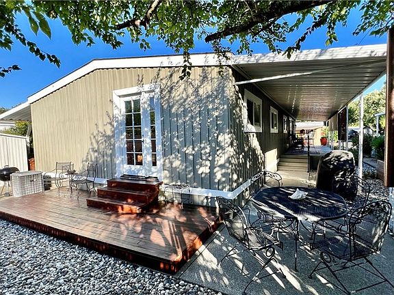 Located in Rancho De Calistoga, a highly desirable 55+ mobile home park. Within walking distance to down town. It features a beautiful "green" recreation building with library, game room, large meeting/dining room, modern kitchen, pool, hot tub, BBQ area and gym. There are an array of activites and neighbors to socialize with. This home has been tastefully updated. It has a large open living area with an updated kitchen. There is lots of natural light and skylights throughout give this home a light and bright feeling. Impeccably landscaped with easy maintenance in mind. The large front deck offers a great space to sit and relax under the covered awning. This is a large 2 bedroom home with just under 1500 sq. ft. The master bedroom is extremely spacious with beautiful French doors leading to the private deck. There are 2 storages on the property for garden supplies and all your extras. Situated on an oversized perimeter space that offers a bit more privacy and is sought after in this community. If you're looking for an affordable living option, in a great community, with all the perks, you will love this home!