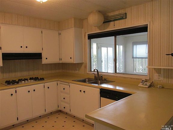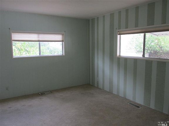 Perimeter location in Rancho de Calistoga 55+ park in Calistoga. Living, dining & family rooms. Two bedrooms, two baths, sunroom & laundry room. Walk-in closets in both bedrooms. Two car carport & backyard. Community pool & clubhouse.