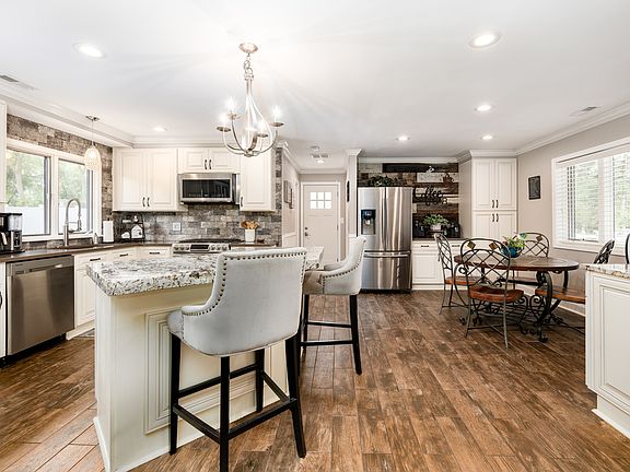 Prepare to fall in LOVE with the luxury and tranquility of this beautifully appointed 3 bedroom ranch home nestled into just under an acre of wooded lot line. STARRING over 2100 square feet of living space, recently rehabbed open floor plan with luxury ceramic wood flooring, gorgeous updated kitchen with custom 42' cabinetry, stainless Samsung appliances, exquisite granite counters, center island, coffee bar and expansive windows with nature views, stately fireplace and updated bathrooms. Both main level bedrooms boast generous room sizes, double closets and luxury vinyl plank flooring. Fully finished basement features extra bedroom/office/workout space, family room and super cute wet bar complete with beverage fridge and additional half bath. Backyard oasis is graced with paver patio with built in fire pit and fenced in area for your fur babies and little ones, with expansive land beyond fence line which features double storage shed. Extra deep attached garage with ample shelving and workbench, with accessibility right into house. NEW washer & dryer, gas water heater, sump pump, water softener, pressure tank and SMART garage door system. Roof 2 years young, well pump 3 years, and HVAC systems 5. So move in ready!