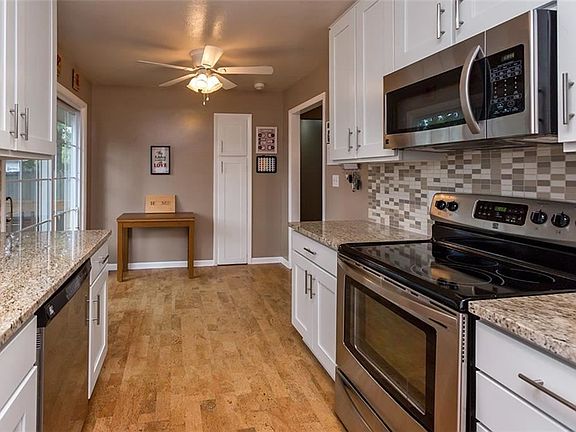 This West Des Moines ranch has all the bells and whistles! The main level features original hardwood flooring that has been refurnished. The master bedroom has two closets and its own full, updated bathroom. It sits away from the other two bedrooms so the kids can have their own side of the house. This kitchen is incredible! Newer cabinets including hardware and soft close drawers, granite countertops, tile backsplash, and cork flooring. It also includes a pantry and new stainless steel appliances! The roof is in great shape and the windows have all been updated. Newer water heater. There is a 2 stall oversized detached garage and a cozy patio behind the home. Fully fenced yard. The basement is partially finished with a 4th non-conforming bedroom that could be a nice toy room or store room with new carpet and paint. This house is perfect for anyone looking for a maintenance-free home near an elementary school on a quiet street.