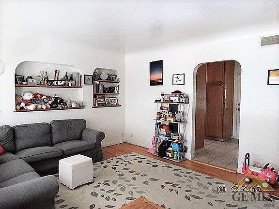 A True home with Charm & History! Nice 3 bedroom home with 1480 sq. ft originally built in 1939 not far from everything in Bakersfield. The original charm includes the Real Hardwood floors & solid plaster interior walls, art alcoves even a built in wall indention for telephone plus arched doorways. Huge Bonus room offers a raised Hearth fireplace and doors to the nice large rear yard. Features include: Ceiling fans, updated bathroom, refinished hardwood floors, spacious yard, room for RV, Central Heat and air conditioning, Covered front porch with wrought iron railings, numerous mature trees, window coverings, Basement, 2-car detached garage with long driveway even enough room for you to store recreational toys. Kitchen complete with Range, oven, Dishwasher and refrigerator. Quick possession!! See this home in person before buying anything else. Great opprortunity. Perfect for first time buyer, investor or even for retirement!