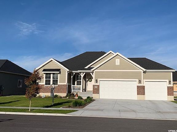 Sale failed due to Buyers not being able to purchase **Home is ready for immediate occupancy!** Amazing West-facing Rambler home in Cranefield, walking distance to Golf Course and community pool. The home is in model home condition, with 9 ft ceilings and extra tall doors throughout. Gorgeous quartz countertops in kitchen with large island. Spacious master bedroom and master bath with extra large shower. This home features a water purification system, water softener, hot water spigot in garage for washing vehicles. The basement offers high ceilings and perfect for large family gatherings. Room in basement for 3 additional bedrooms and 1 bath. The yard is completely finished and offers beautiful views of the mountains. Outdoor recessed lighting around exterior offer the finishing touches.