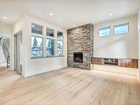 Frank Lloyd Wright inspired prairie styled home near the heart of NorthWest Crossing, designed and constructed by an award winning duo, Jason Todd Designs and Cloninger Custom Homes. Delightful great room with 10ft ceilings, open floor plan with custom built-in cabinetry and hardwood flooring. Kitchen is complete with stainless appliance package, quartz countertops and generous pantry. Master suite on the main floor, tucked away for privacy on this corner lot. Master bathroom features a full tile shower along with radiant in-floor heat. Custom built open tread stairwell allows the floor to ceiling windows to bring lots of natural light to permeate into the home. Upstairs features two guest bedrooms, full bathroom and loft area. Home will be outfitted with central vac system, central A/C, PV solar panels and 50A garage outlet for electric vehicle.