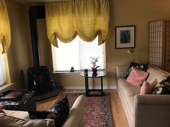 406-600-8593: The first level has Grade A maple hard wood floors and cabinets throughout. Gas fireplace in living room. Built-in bookcase off living room area. Half bath laundry room floors are of Roman Gold Limestone from Isreal. Upstairs bedrooms have cathedral ceilings. Storage and hall closets on second floor. Master bedroom balcony has sliding class doors overlooking expansive landscaped yard, mountains, mature trees. Two forward bedrooms have arched windows covered with multi function custom Bali shades.