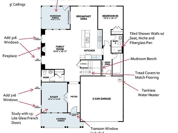 Blair E Slab Space -Ready Dec/Jan Gorgeous 5 bed, 4.5 bath on .15 of an acre with over 3300 plus sq ft. This amazing floor plan offers gourmet kitchen with gas cooktop, double ovens, oversized island and huge walk in pantry. 1st floor guest suite w/ full bath, study and screened porch! 2nd floor features spacious loft, owners suite with tile shower, vessel tub and dual vanities. Must see. Model home available to tour. The Friendship schools (Elementary, Middle & High) are located adjacent to this beautiful community.