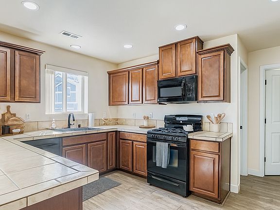 The kitchen features tile countertops, a built-in desk, and a spacious walk-in pantry. Upstairs, the large loft offers flexible space for a home office, media room, or play area. The primary suite showcases a five-piece bath and an oversized walk-in closet.