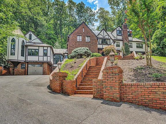 Elevator runs from garage to master suite and kitchen. This beautifully renovated 1920s Tudor offers breathtaking views of the Blue Ridge Mountains and Roanoke Valley. Ideally located just blocks from Carilion Hospital, the Roanoke River Greenway, wooded hiking trails, and South Roanoke's shops and restaurants, this home blends timeless character with luxurious modern updates. Inside, you'll find a gourmet kitchen, two primary suites (one on the main level), an elevator, two laundry rooms, custom wall coverings, and updated bathrooms throughout. The brick patio out front provides a perfect space to relax and take in the sweeping views. Situated on over an acre across two lots, this property offers privacy and room to roam. Additional upgrades include a new slate roof, new appliances, and whole-house generator.