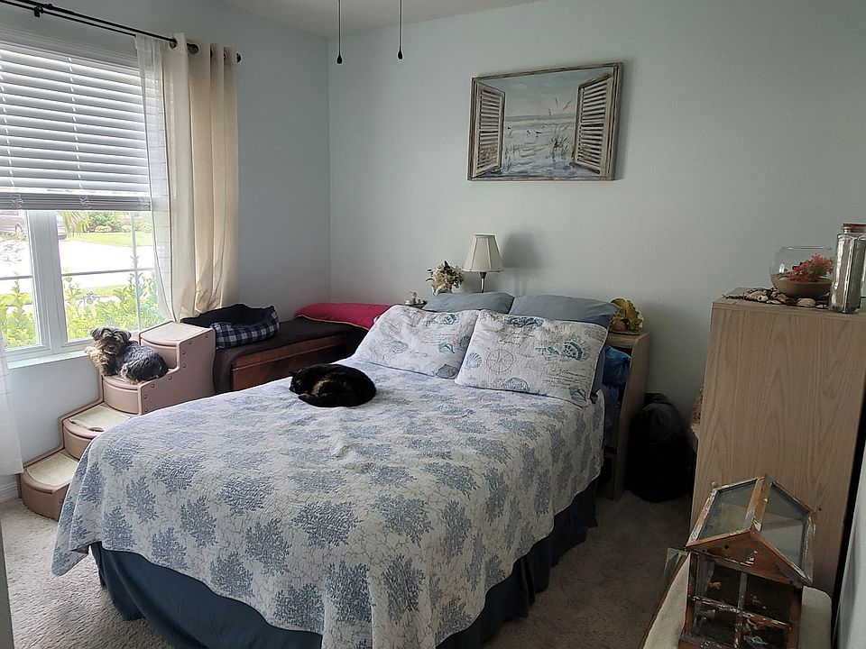 Private bedroom, bathroom is shared and directly next to the bedroom you would be renting. Private bedroom is right when you walk in through the front door on the left hand side. The bedroom has a closet and hangers. Bedroom has a full size bed, bookshelf with lots of books of all ages. The top of the headboard will be cleaned off with only stuff you wish to have on it. Shared kitchen, living room and backyard. The house is open concept for kitchen/living room. Kitchen has fridge, oven, microwave and a lot of other kitchen appliances. Living room has a 50" TV. Backyard is fenced in with a beautiful view of pond, wildlife, and sunset. Cat and dog (yorkie) already reside here and no other fur animals would be allowed. Both animals are very friendly and like attention. You would be able to park the car right in front of the house on the street. It has a large community pool you can use and it is a gated community. Available June 21st- August 31st