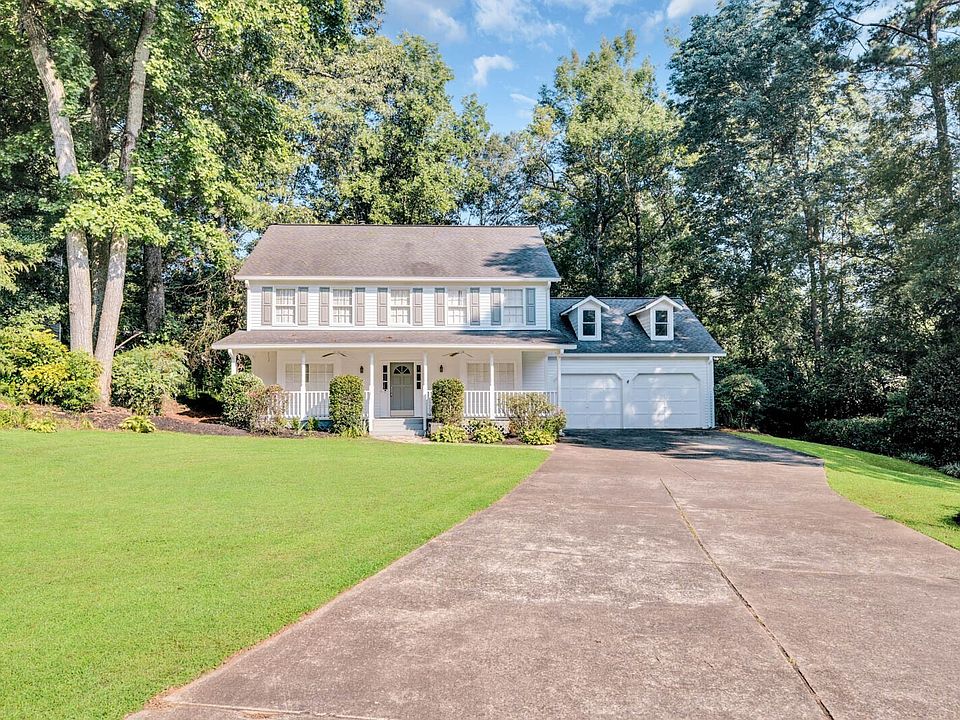 Beautifully updated and meticulously maintained, this listing presents a charming and spacious home perfect for comfortable living. The exterior has been expertly repainted, enhancing its curb appeal and providing a fresh and welcoming look. The oversized rocking front porch invites you to relax and enjoy the outdoors, creating an ideal spot for morning coffee or evening conversations. As you step inside, you'll be greeted by stunning hardwood floors that flow throughout the main level, adding an elegant touch to the living spaces. Large kitchen featuring granite countertops with stainless steel appliance package providing both modern functionality and a sleek aesthetic, making cooking a joyous experience. A cozy breakfast room right off the kitchen as well as an adjacent dining room, offering ample space for family meals and gatherings. A large fireside family room boasts built-ins that add character and functionality, while also granting access to the backyard a seamless blend of indoor and outdoor living. The backyard is a retreat in itself, boasting an expansive and fully fenced space that's perfect for outdoor activities, gardening, and relaxation. Whether you're hosting a barbecue or simply enjoying the sunshine, this backyard offers endless possibilities. Upstairs, you'll find an oversized master suite, complete with his and hers closets with built-ins that will perfectly accommodate your wardrobe. The master bathroom offers a private oasis, allowing you to unwind after a long day. The secondary bedrooms are equally impressive, offering ample closet space. There is a huge un-finished storage room above the garage making it easy to keep your belongings organized and out of sight or future finished sqft. This home is centrally located, offering quick access to shopping, parks, schools, highways, and more. It's nestled in the desirable Wheeler HS district, ensuring quality education and a strong sense of community. Don't miss out on this opportunity to own a tastefully updated and well-appointed home that checks off all the boxes for comfortable and stylish living.