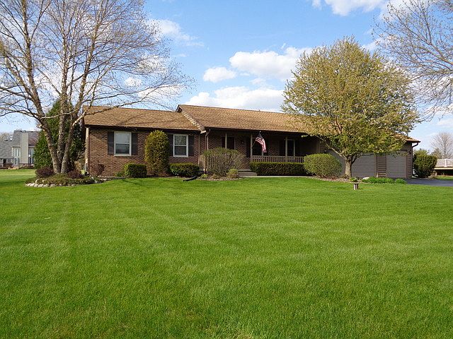 Peaceful Country Living in this brick and cedar ranch home! Picturesque corner lot is professionally landscaped for beauty & privacy. All spruced up w/ many newer or replaced items including roof, appliances, HWH, 3 Season Sunroom, Gutters, Front Door, Garage Doors & Openers, Bathroom Vanity & new paint & carpet in some rooms. X-large 3+ car garage! Great Neighborhood & Schools! This GEM is ready to close quick!