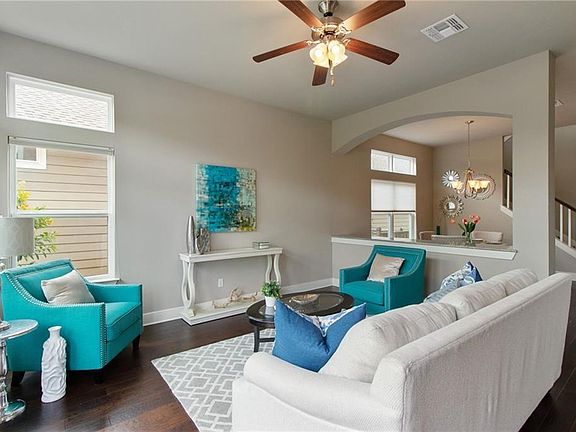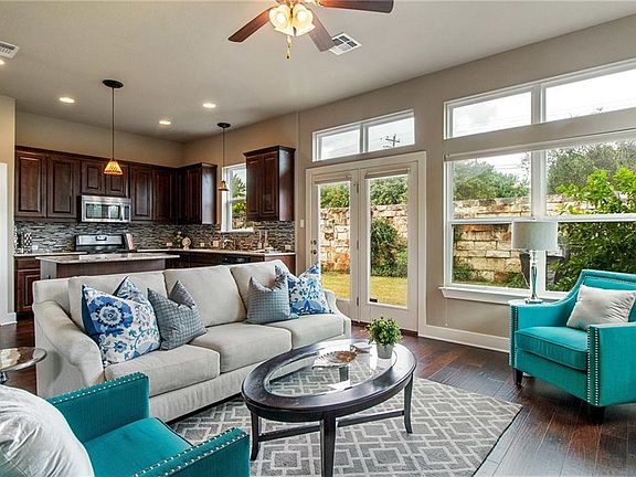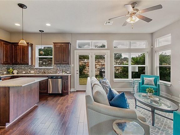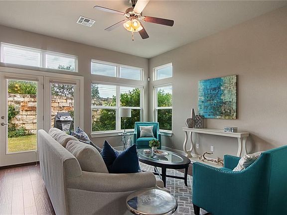PRIME LOCATION-Quick access to shopping, dining, entertainment & MOPAC! Private gated community with POOL! Home features include private office, hardwood floors, plantation shutters, tons of windows & natural light, bonus living w/ built in entertainment, covered balcony, spacious master suite w/ expansive closet &MORE! Gourmet kitchen with granite counter tops, sleek stainless appliances, stacked tile backsplash, tons of storage space, separate dining w/built in bar. PRIVATE backyard w/ large grassy area