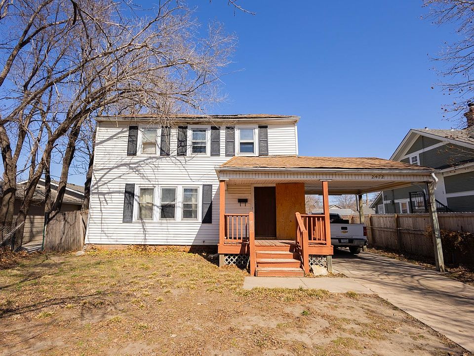 THIS PROPERTY IS BEING OFFERED IN A MULTI-PROPERTY AUCTION VIA LIVE STREAM WITH REAL TIME BIDDING, AUCTION BEGINS AT 5:30 PM ON APRIL 3, 2025. ONLINE BIDDING IS AVAILABLE THROUGH SELLER AGENT’S WEBSITE PROPERTY IS SELLING WITH CLEAR TITLE AT CLOSING AND NO BACK TAXES. PROPERTY PREVIEWS AVAILABLE. Located in the Delano District, this two-story home offers convenient access to Wichita amenities. The exterior features a covered front porch, a carport, and a detached two-car garage with alley access. Inside, the main level includes a spacious living room with hardwood flooring and wood trim, a formal dining room, and a kitchen with tile flooring and laundry hookups. There is also a half-bath setup in need of repair. Upstairs, you’ll find three bedrooms and a full bathroom. The unfinished basement provides additional storage space. This would make a great investment project! The property has been damaged by fire, smoke, or water. Portions of the property may have dangerous conditions, including loose timbers, collapsed or collapsing ceiling or floors, or other similar hazards. Enter at your own risk. Please proceed with caution! There is currently no gas meter on the property. All or some of the utilities are turned off. It will be the responsibility of the buyer to comply with any requirements imposed by the utility companies to return service to the property. *Buyer should verify school assignments as they are subject to change. The real estate is offered at public auction in its present, “as is where is” condition and is accepted by the buyer without any expressed or implied warranties or representations from the seller or seller’s agents. Full auction terms and conditions provided in the Property Information Packet. Total purchase price will include a 10% buyer’s premium ($2,500.00 minimum) added to the final bid. Property available to preview by appointment. Earnest money is due from the high bidder at the auction in the form of cash, check, or immediately available, certified funds in the amount $5,000.