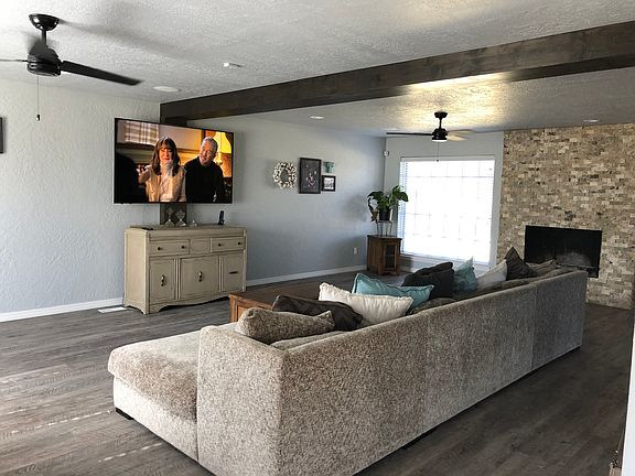 Remodeled home in the Wildwood addition! This big beautiful two story home has a fresh feeling with a large open space to entertain your guests! From the stone covered fireplace to the over sized bar/island, there's room for gatherings. There is new cabinets and appliances, remodeled bathrooms, a large covered patio where you can sit and enjoy the shade!