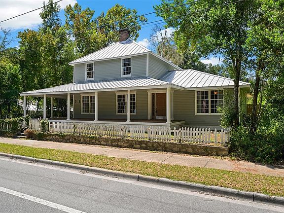Welcome to a true piece of Historic Florida! Come find a beautifully renovated home where timeless character blends seamlessly with modern comfort. This spacious residence has been thoughtfully updated with major improvements, including a new commercial-grade metal roof (2019) and dual AC units (2019), updated electrical and plumbing, and stainless steel appliances in a chef-inspired galley kitchen. The kitchen is designed for culinary creativity, offering both style and functionality with a stunning view of the open Florida skies. Step inside and you’ll find warm hardwood floors, detailed crown molding, and a layout that flows effortlessly. The stunning master bathroom is a true retreat, featuring spa-like finishes that invite you to unwind. Outside, enjoy a fully fenced yard perfect for pets, gatherings, or simply soaking up the Florida sunshine. Despite its generous size and upgrades, the home maintains a low utility bill thanks to its efficiency. Best of all, the home is located just 0.4 miles from the charming shops, dining, and historic beauty of downtown High Springs. Property is zoned C2 - mixed use. Currently set up for residential living but can easily be converted for office space or a Bed and Breakfast.