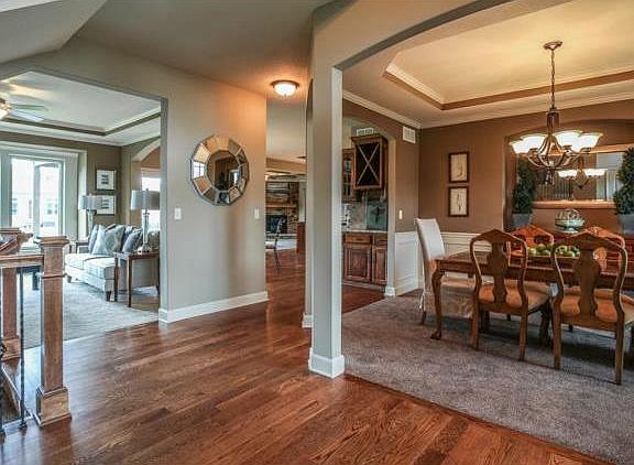 Gorgeous layout features multiple gathering areas. K.C. Building Co. "Traveler Manor III" featuring unique Office space off landing to upper level. Designer inspired layout offers formal Living/Dining areas and large cozy Hearth Room with stone fireplace. Massive center island kitchen layout provides ample room for entertaining/hosting & is adorned detailed trim work. Spacious Master Suite with sitting area and oversized Master Suite Bath/walk-in closet area. Full basement incl. 620 +/- sq ft fin. media area.