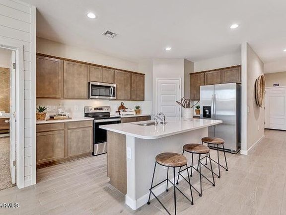 Brand new construction, LARGE CORNER LOT WITH A DOUBLE GATE November 2024 completion. this Huntsville floor plan features 4 bedrooms and 2 baths. Burlap shaker style cabinets in kitchen and baths. Designer 12x24 in tile everywhere but bedrooms, upgraded carpet in bedrooms only. Kitchen has stainless steel appliances, range/oven, microwave and dishwasher, single basin sink with high arc faucet. Quartz kitchen counter tops! Window blinds throughout with verticals on Sliding Glass Door. Stop by to see this beautiful plan! Photos represent other models of this plan.