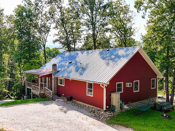 Stunning 8.95 +/- unrestricted acres with an abundance of possibilities! The main house is functionally a 3-bed, 2-bath home. Relax on the covered 3/4 wrap-around porch to the peaceful valley views. On the main level, you'll find an updated kitchen equipped with a gas stove, spice shelf, and appliance lift. Also on the main are the three bedrooms and a sizable hall bath. The primary bedroom has a 12x6 walk-in closet! The living room features vaulted ceilings with a functional wood stove for those cooler winter days! Upstairs is a loft space used as an office. Downstairs you'll find the second bath accessible through the unfinished one-car garage. Also, downstairs is an abundance of storage space with a partially finished room that can function as another office or guest room if preferred- not climate controlled. Across the property is a 1-bed, 1-bath 600+ sq ft guest cottage featuring an open floor plan, functional kitchen, covered front, and back porch, and a metal roof for low maintenance. Just outside the guest cottage is a firepit and garden area. The property also features 2 RV hookups, a detached single garage/workshop, pole barn storage, and a metal storage building.