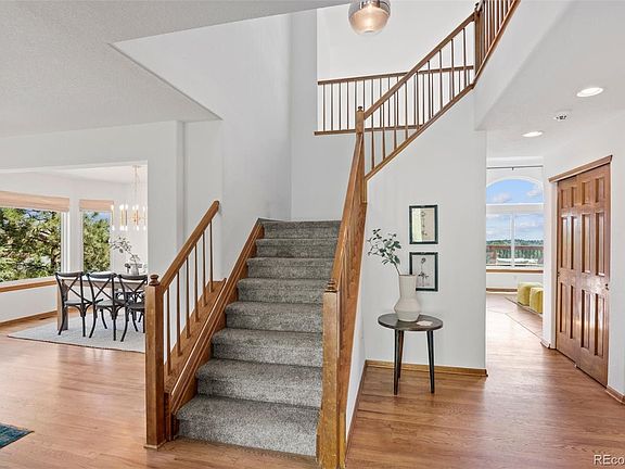 Mountain living meets city convenience in this gorgeous Colorado foothills home. Upgraded throughout, this home boasts soaring high ceilings, wood floors, abundant windows, and stunning views of both the foothills & the city lights. The main level is spacious & bright, offering a formal living room and dining room at the front of the home with views of the open space to the South, and a large open floorpan at the back of the home with views of the foothills. The kitchen is thoughtfully designed with custom cabinets, quartz counters, newer stainless appliances, and a custom iron & glass pantry that dreams are made of! Adjacent to the kitchen is a breakfast nook, a large family room for gathering, and a wood burning stove to keep the entire home cozy. Massive windows and sliding doors expand across the back of the home, soaking the entire living space with sunshine and a beautiful mountainous backdrop. The 2-story Hensel Phelps deck is a show-stopper, spanning the entire width of the home on two levels and offering incredible views. An updated powder room & laundry room round out the main level. The upper level features 4 bedrooms and 2 updated bathrooms, including a spacious & updated primary retreat. A cozy bedroom with views of the open space above, and a large, tastefully remodeled 5-piece bathroom with heated floors, natural finishes, large soaking tub, steam shower and a large custom primary closet. The lower level is a fully finished, half daylight, walkout basement that lives as its own sanctuary with a wet bar, full bathroom and 1200 square feet of flex space that can be used as a 5th bedroom, living room, home office, gym, guest suite and more. Sliding doors lead to the lower level of the extraordinary deck. 2 additional unfinished storage spaces in the basement. All new windows and sliding doors. Brand new fridge. New light fixtures throughout. Dog run. New blinds throughout. 2-car attached garage. Open space on 3 sides. Absolutely stunning.