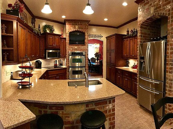 The AMAZING sunsets you will see on your new back porch! Recently painted & move in ready! New lighting fixtures, kitchen backsplash & cooktop in this home nestled among gorgeous mature trees on 2 acres in private addition. 2nd story great room or 5th BR. 4 full baths w/Corian countertops. Master features vaulted ceiling & huge walk in closet w/built ins. Bali wood blinds throughout. Kitchen has granite counter tops, stainless steel appliances w/bricked in double ovens, & under cabinet lighting. Cathedral ceiling in den & gas wood burning fire place. Wood flooring in dining. Safe room. Office space w/built ins & huge walk in 2nd story attic storage space & 3rd story attic. Newer roof w/impact resistant class 4 shingle, gutters, & copper finials. Custom landscaping retaining wall surrounds property w/bricked back patio & pergola w/sprinkler system. NO HOA/restrictions. Shop building & animals allowed. Road maintenance in progress. $5000 closing cost/home warranty with approved offer.