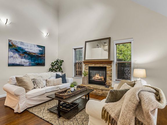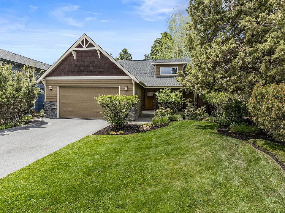 This charming home is located on a quiet street in the Hawks Ridge neighborhood offering a prime location on Bend's Westside with easy access to Downtown. The attractive covered front porch welcomes you into a well designed great room with soaring ceilings, gas fireplace and lots of windows for natural light. Wide plank hardwood flooring flows through to the dining area and kitchen with tiled counters and ample cabinetry. Large Primary Suite on the main level, two additional bedrooms and full bath upstairs w/extra storage space. The large and level lot is beautifully landscaped with mature trees and offers a very private, fenced backyard perfect for entertaining with both a deck with pergola and a paver stone patio with fire pit. Double car garage, A/C and move-in ready!