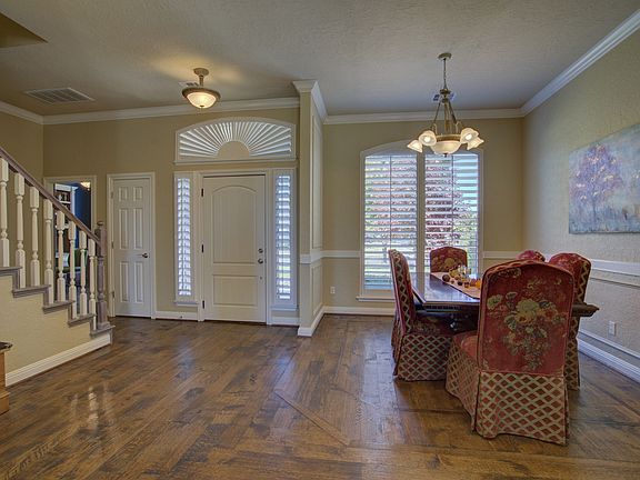 What an eastside view! Outdoor living for your family - large back yard with wrought iron fence bringing a pond and green belt right up to the backyard. This home has an open floor plan with beautiful hardwood floors & Plantation Shutters throughout. Downstairs 3 beds & study with custom cabinetry and upstairs a Bedroom/game room with a large closet and bath. Gourmet Kitchen with granite countertops, gas cooktop and double oven. 2 Heat & Airs - 2 Water Heaters - one is tank-less. Heater is high-efficiency air heat pump. Storm shelter in the 3 car garage. West Side Norman in the highly desirable neighborhood of Warwick Addition. Community pool