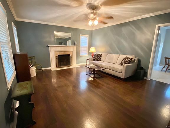 Back on the market due to buyer remorse! Lovely home in the heart of the University of Evansville area is move-in ready! Luxury wood laminate flooring in the spacious living room gives a warm feel to the room. Don't forget the wood burning fireplace for those upcoming winter nights! The two bedrooms are also roomy and have new carpeting (hardwood underneath!). The kitchen updated in 2022, has new cabinetry, new dishwasher and beautiful butcher block countertops! The dining room has built-ins for extra storage. Don't forget the new 2 car detached garage with 100 amp service! The full basement could be used for additional living space. New gutters and downspouts installed in 2021 and new porch soffits installed in 2023. The seller is including a $649 2-10 home warranty for your first year of ownership.