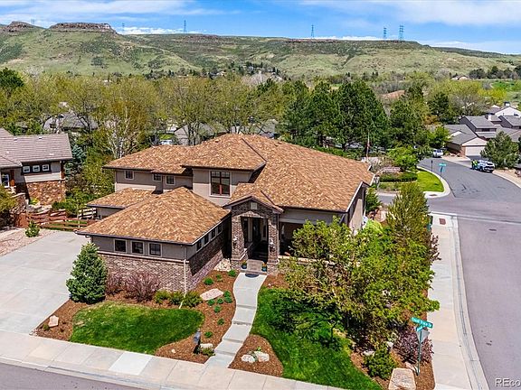 Welcome to your Golden dream retreat. Nestled across the street from the prestigious Fossil Trace Golf Course, this luxury home offers the epitome of refined living. Boasting 4 bedrooms and 5 bathrooms, every inch of this home exudes elegance and comfort. Step into the grand foyer, where natural light dances through expansive Sierra Pacific windows, illuminating the exquisite hardwood floors, and designer finishes. The open-concept layout seamlessly connects the living spaces, creating an inviting ambiance perfect for entertaining or simply unwinding in style. The heart of the home lies in the gourmet kitchen, where culinary enthusiasts will delight in top-of-the-line appliances (Sub Zero, Thermador & Dacor), custom cabinetry by Columbia, and sleek quartz countertops. From casual breakfasts to formal dinner parties, this space is sure to inspire culinary creativity. Relaxation awaits in the tranquil primary suite, complete with a spa-like ensuite bathroom (remodeled 2024). Three additional bedrooms provide ample space for family and guests, each offering a private bathroom, plush carpeting and ample closet space. Work from home effortlessly in the dedicated office space, where productivity meets sophistication with a million-dollar view. When it's time to unwind, step outside to the expansive deck and take in the breathtaking views. Conveniently located within walking distance to downtown Golden, residents can explore charming shops, delectable dining options, and vibrant cultural attractions with ease. Outdoor enthusiasts will appreciate the proximity to parks, trails, mountain biking routes, and Clear Creek, offering endless opportunities for adventure. With luxury living, breathtaking views, and unparalleled convenience, this Golden gem is more than just a home—it's a lifestyle. Don't miss your chance to experience the epitome of Colorado living. Schedule your private tour today. Cinematic video - https://listings.mediamaxphotography.com/2413-Fossil-Trace-Dr