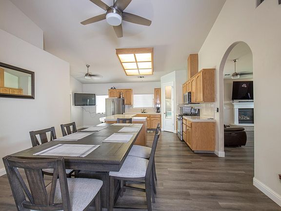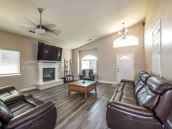 This beautiful four bedroom, two bathroom home is ideally located in Clovis, within the Clovis High School boundaries. This home features updated wood laminate flooring and many upgrades throughout, including surround sound. The kitchen has stainless steel appliances, a large island that is ideal for get togethers and the floor plan provides an open concept layout. The spacious three car garage offers ample storage space and parking. In the backyard, is your own tropical oasis, which boasts a sparkling inground pool, several palm trees, covered patio and open grass area, perfect for entertaining. Across the street is a small community park/grass area.
