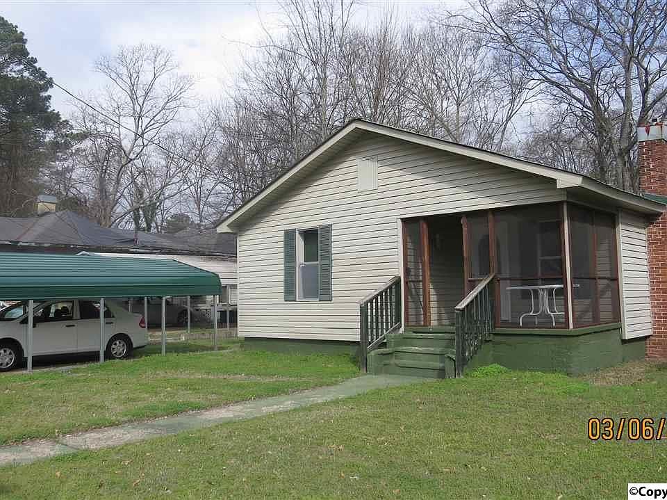 Cute as a button! With a little tlc, this would make a great first time home or rental! 2 bedroom, 1 bath home with living room, dining room, kitchen and laundry. Home has central heat with gas back up and gas log fireplace, metal roof, new carport, screened porch and detached building. Appliances included! Call today for more info!