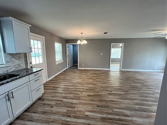 Newly renovated 4 bedroom, 2 bathroom home in Northwest Albany! You will love the updated features throughout the open floor plan on this 1400 sq ft beauty. Luxury vinyl plank throughout the living areas and bedrooms. The kitchen has new cabinets, new drawer-pulls, tile backsplash, granite countertops, new faucet, garbage disposal, and brand new appliances. There is a large primary bedroom with a beautifully tiled walk in shower which includes a new vanity and toilet. The hall bathroom features similar upgrades as the primary as well, completing the upgraded look and feel throughout the home. Ample parking gives way to a single carport that features a storage room and an attached concrete pad that would serve perfectly as an outdoor patio area to entertain guests. The backyard has a covered patio as soon as you come out the back door. There is a large, detached wired workshop in the backyard also that comes with a brand new roll-up door.
