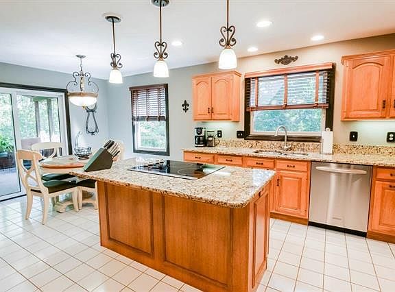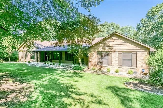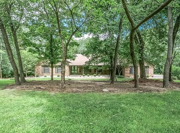 Craftsman Ranch with 4 Car Garage on Private 3 Acre Lot with over 2,000 sq. ft. on the main floor, 4+ Bedrooms total with Finished Walkout Lower Level in Wildwood on 3 private and wooded acres. This home has an entry foyer, living room, formal dining room, a great room with beautiful brick hearth fireplace, an UPDATED Kitchen with tons of custom cabinets, lots of GRANITE Countertops, double ovens, center island, separate main floor laundry and half bath off garage and kitchen areas, plus a Screened Porch and a deck. Updated master suite with wood floors and a gorgeous bathroom with O/S custom tile shower and a walk-in closet. Finished LL includes a rec room with second fireplace, a wet bar, a second kitchen, family room, workshop hobby area, a bedroom plus another sleeping room (possible 5th bedroom), a den with a walk-in closet, plus two storage areas. TWO Oversize 2-Car garages.