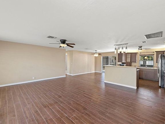 Brand new roofs on the house, garage and shed are being installed!!! Looking for the perfect house in a friendly neighborhood? I know just the one! Freshly painted inside and out. Stunning floor tile that blends with the kitchen cabinets and granite counter tops. Stainless steel appliances. Brand new washer and dryer. New water heater. Master bedroom has three closets, Master bath has double sinks. Large Theater room with projector equipment. Large guest bedrooms. Giant screened Lanai with vaulted ceilings, the existing hot tub leaves room for dinning table and outdoor seating. White fence provides privacy on all three sides of the back yard. There are two storage units, a smaller shed and a workshop that is almost 700 square feet with a double garage door and a single entry door. The workshop has high ceilings with upper storage potential. There are two driveways that connect. One is a circular the other leads to the large garage/work shop in the back. The neighborhood has a play area for all ages and a community room. Joining the HOA is voluntary. The Villas has a popular Face Book page where you will often read about neighbors helping others
