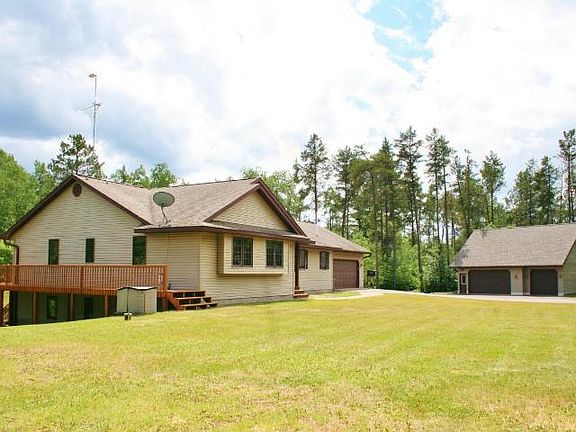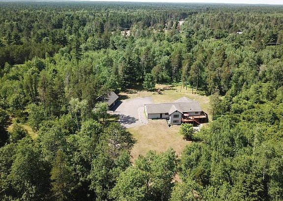 Wonderful ranch home tucked on a private wooded 2.24 acre parcel. This home has a nice open great room with vaulted wood ceiling, cozy gas fireplace, very nice kitchen with large island and newer stainless appliances. The dining area leads out to a newer deck to relax and enjoy the wildlife. The main level master en suite has a large walk-in closet and full bathroom. 3 additional bedrooms and full guest bathroom are also on the main level. The att. garage enters the home near a fantastic mud room/laundry area and a powder room. The lwr level walk-out has been nicely finished with an office overlooking the front yard, a full bathroom, and a game/media room, plus a large family room area with lots of windows that just needs your finishing touches. You'll really appreciate the detached 3 car garage with attic storage. Easy access to the paved bike & hike trails, the snowmobile trails & nearby county land and lakes to explore. The home is quality built, well designed.
