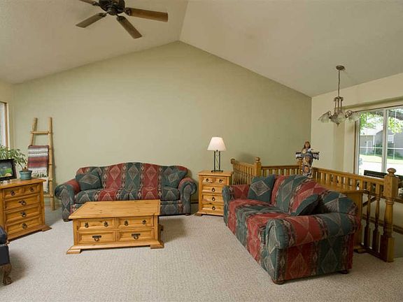 The views from this hard to find waterfront home will WOW you from the moment you enter the front door. Well cared for (one owner) 5bed/3bath/3car lake lot home sits on a quiet cul de sac street in Sterling Farms. Upon entering the home, you will notice the vaulted ceilings, two sided fireplace and large beveled glass windows that overlook the fantastic lake view. The bright and open kitchen features a center island with eating bar and plenty of counter and cabinet space. Kitchen appliance are all matching stainless steel, with a gas stove/double oven for the chef in your family. The spacious master bedroom has a private deck enterance, offers a generously-sized walk-in closet as well as an en-suite bath and shower. Two additional bedrooms, a full bathroom and a separate main floor laundry room with folding counter complete this level. Heading downstairs to this walk out basement, you will encounter a huge family/rec room with a corner gas fireplace. Two additional bedrooms, both with built in shelving/desk space and a full bath room complete this home. Some of the home efficiencies: low maintenance TimberTech deck, sprinkler system and irrigaton well, high efficiency HVAC system with AccuClean air filtration system. Close to groceries, restaurants and New Market Square in the highly desireable Maize School District. We don't expect this one to be around long so schedule your showing today!