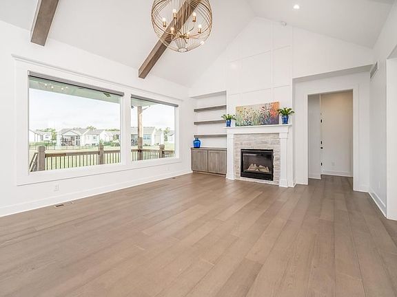 Welcome home! Gorgeous Craig Sharp built home located on a lake lot! No carpet in the home - all engineered hardwood and tile flooring throughout. High end finishes and upgrades throughout including premium appliances, high end light fixtures, remote controlled window treatments on the main floor, custom built-in's in the master closet and living room, a wrought iron fence, Medico locks added (high end), flood lights in the backyard, and so much more. The main floor offers a spacious, open concept living room, dining, and kitchen with vaulted ceilings, a walk-in pantry, mud bench area, eating bar, and all overlooking the gorgeous lake lot. The living room has a gas fireplace that is a focal piece with the surrounding, custom built-in's. The finishes are a dream in the kitchen with quartz counters, soft close drawers, a gas stove (Wolf), convection oven, and upgraded hardware on the cabinets. The home offers a split bedroom plan with a spacious master suite with high end master bathroom finishes and a walk-in closet that connects to the laundry room. The homeowner even had built-in's added in the master closet for added convenience. Also on the main floor, you will find two additional bedrooms and a second full bathroom with tile floor, high end counters, and a herringbone tile bathtub surround. Head to the basement to enjoy the large rec room with engineered hardwood, a custom wet bar, two additional bedrooms with a jack and jill third bathroom, and a powder bath just off the rec room (perfect for guests). Upgrades were not spared in the basement either - high end plumbing fixtures, tile flooring in the bathrooms and wet bar, and engineered hardwood flooring in rec room and bedrooms. There is great storage space as well! All the windows provide great light throughout the home. You will absolutely love the fenced in, lake lot with covered deck. There is a sprinkler system, irrigation well, and established landscaping too. In addition, there is a high efficiency AC, the home has two porcelain tubs, a finished garage space (painted with molding), and the back porch has been stained/painted and stone added underneath the deck. You also can't beat the wonderful Cornerstone community with walking paths to the elementary school, fishing ponds, a park, pickle ball courts, and three neighborhood pools. You don't want to miss out! This 2 year old is move-in ready!