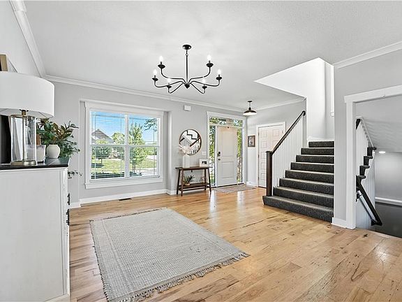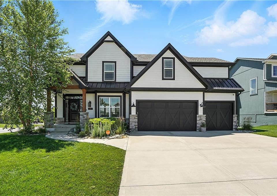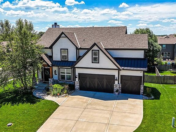 This beautifully crafted 2-story home offers exceptional design, modern functionality, and timeless charm. Perfectly situated on an oversized corner lot in the highly coveted Staley Hills community. With striking modern farmhouse architecture, curated interior finishes, and a spacious layout, this home is a rare find. The main level features rich, upgraded hickory hardwood flooring & a sundrenched great room enhanced by a shiplap accent wall. The gourmet kitchen is a chef's dream highlighted by painted custom cabinetry, Bosch stainless appliances, quartz countertops, an oversized island, and a walk-in pantry. A bright breakfast room, wrapped in windows & finished with a stunning shiplap wall, provides the perfect casual dining space. Thoughtfully designed mudroom area includes a built-in boot bench and cubbies for organization. Main-level powder room showcases designer flair with a farmhouse-inspired sink, wood vanity, & shiplap accents. Step outside to a spacious, covered deck—ideal for alfresco entertaining. Upstairs, the primary suite is a true retreat featuring a tray ceiling, expansive walk-in closet, and a luxurious en-suite bath complete with a freestanding soaker tub, oversized walk-in shower, dual quartz-topped vanities, & refined tilework. Four additional bedrooms provide ample space—one with a private en-suite bath, walk-in closet, and a adorable hidden playroom. Finished lower level offers wide-open space with durable LVP flooring—perfect for a living room, gaming area.  Easily convert area to future 6th bedroom complete with an egress window and closet. Framing is in place for a future full bathroom and wet bar, offering even more possibilities. The backyard is a private oasis with a full privacy fence, expanded patio, cozy fire pit area, and full-yard irrigation system. Permanent holiday lighting enhances curb appeal year-round. Located in one of the Northland’s most desirable neighborhoods complete with swimming pool , park, ponds and walking trails.