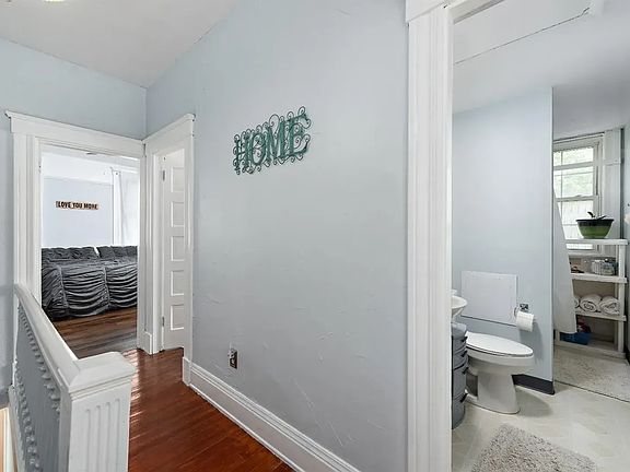 Large covered front porchOff street parkingHuge fenced rear yardHigh ceilingsPocket doorsHardwood floors