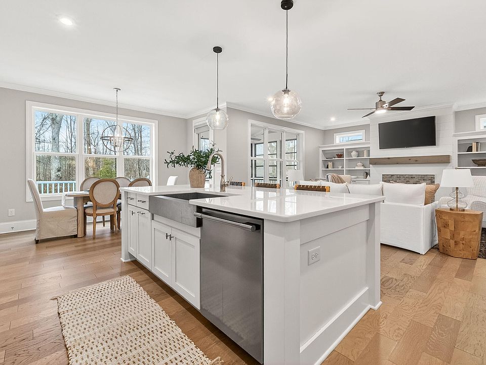 Perfectly positioned within walking distance to the school, 2413 Plowridge Rd is located in one of the area's most desirable neighborhoods where community and quality collide. Custom-built with exceptional attention to detail, this elegant home in sought-after Sunset Bluffs blends timeless design with a tranquil, wooded setting. The main-level owner's suite is a true retreat, featuring a spa-inspired bath with a freestanding soaking tub, separate walk-in shower. Designed for both refined entertaining and comfortable everyday living, the open-concept floor plan showcases a beautifully appointed chef's kitchen an oversized walk-in pantry, and generous prep and gathering space. The family room is anchored by a fireplace with custom built-ins, creating a warm yet sophisticated focal point. First-floor laundry adds convenience without sacrificing style. Upstairs, there are 3 generously sized bedrooms, a versatile bonus room and an inviting loft with additional built-ins. Outdoor living is elevated with a three-season room and deck overlooking a peaceful, wooded backdrop, offering privacy and serenity year-round. Residents have direct access to Bass lake walking trail and the option to join The Club and Sunset, enhancing the lifestyle appeal of this thoughtfully crafted home.